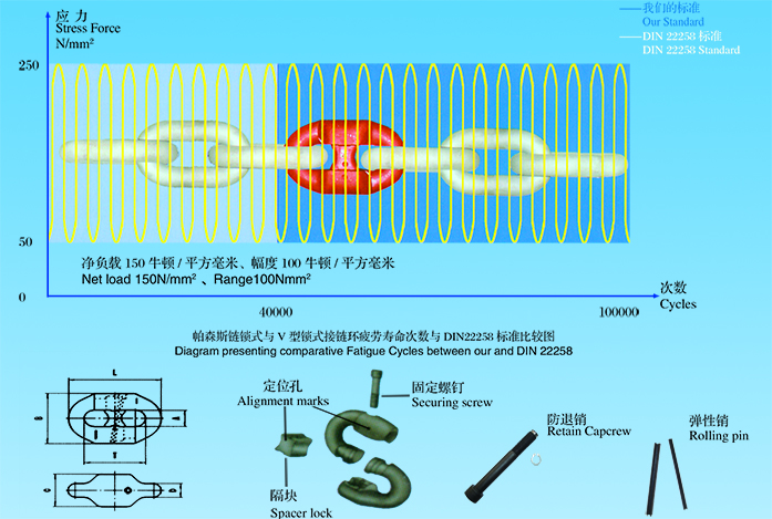 帕森斯鏈鎖式接鏈環與DIN22258標準機械性能比較圖