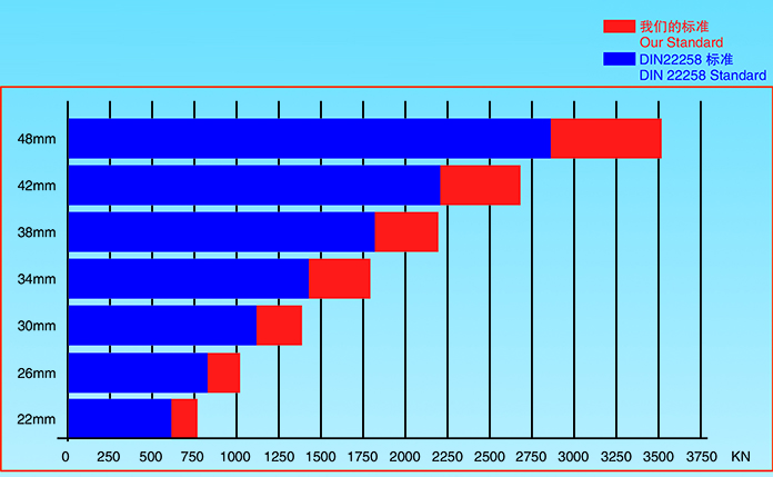Mechanical property diagram presenting Comparative standard between ours and DIN 22258