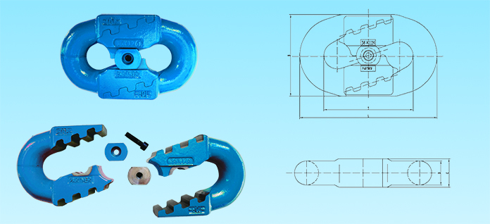 高強(qiáng)度、高耐磨梯齒型接鏈環(huán)采用了富含Cr, Ni, Mo元素的高合金鋼制造而成,在可控氣氛多用爐中完成滲碳熱處理工藝,具有高耐磨(硬度 HV800 以上,滲碳深度0.1d,有效硬化層深度0.05d)、高強(qiáng)度(破斷應(yīng)力400N/mm2 以上)、安裝方便(水平和垂直都能使用)的特點(diǎn),廣泛應(yīng)用在電廠撈渣機(jī)傳動(dòng)系統(tǒng)上,并可提供常規(guī)熱處理的通用型接鏈環(huán)。高強(qiáng)度、高耐磨梯齒型接鏈環(huán)中環(huán)外形尺寸符合DIN22258 Part1 和MT/T99標(biāo)準(zhǔn)要求。